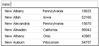 This will display values similar to the first way but adds more information to the drop down menu, such as state and zip, in addition to the city. The screen shot below shows this method in action: